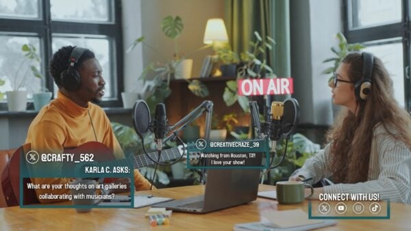 Participation builds loyalty. Display live comments, polls, or viewer messages on screen to let your audience see themselves in the show. Those small interactive moments turn passive viewers into engaged community members.