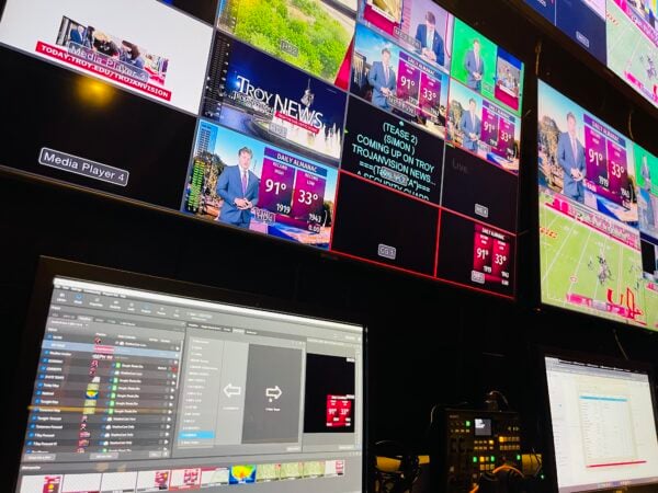 As part of the Hall School of Journalism and Communication, TROY TrojanVision serves as the hands-on training ground for Troy’s broadcast journalism degree — giving students a real newsroom experience that builds both technical skills and storytelling confidence.