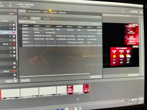Each afternoon, students arrive ready to build that day’s shows from scratch — rundowns, graphics, titles, data, and weather. With Captivate, they can import elements directly from Photoshop, After Effects, and Google Sheets, or design their own visuals using Captivate Designer.
